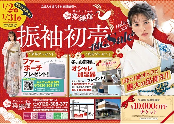 さて、1/2からは超BIGイベントの振袖初売を開催!! 例年多くのお客様にご来店いただいております。